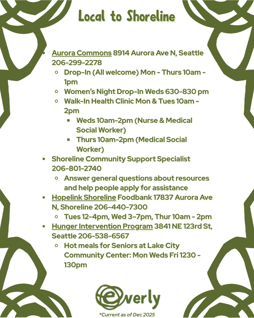 Thurs 10am-2pm (Medical Social Worker ONLY)Shoreline Community Support Specialist 206-801-2740