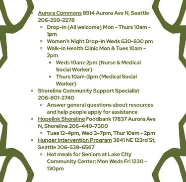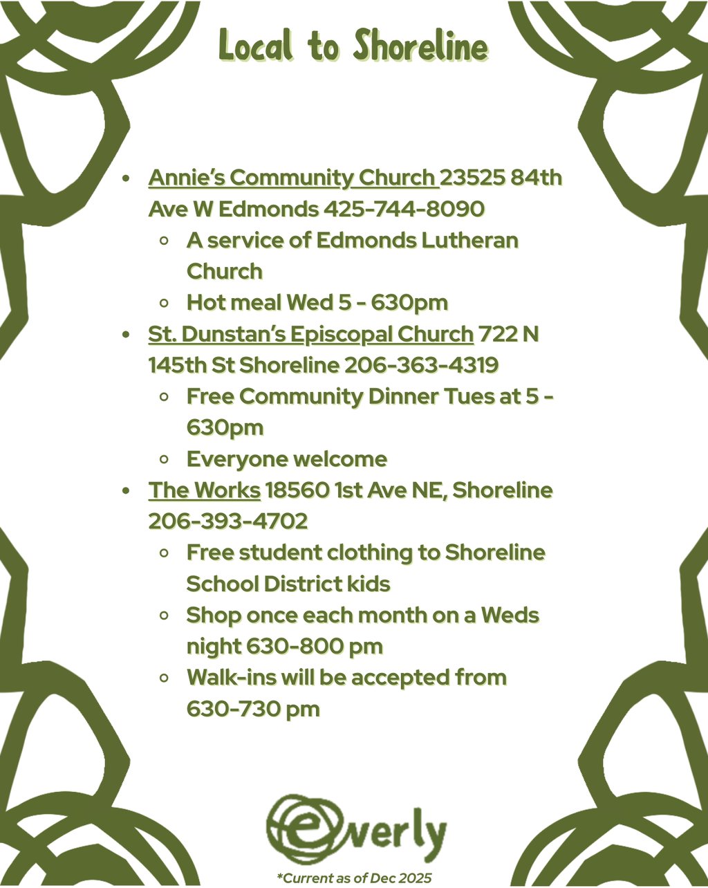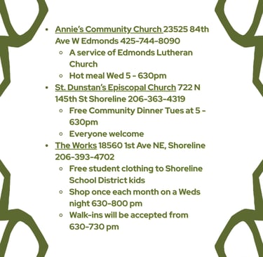 Hopelink Shoreline Foodbank 17837 Aurora Ave N, Shoreline 206-440-7300